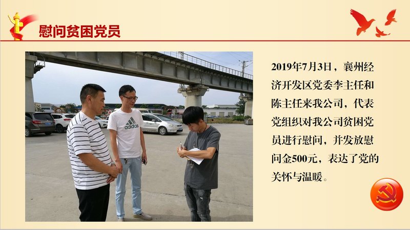 2、襄州區(qū)經(jīng)濟(jì)開發(fā)區(qū)黨委來我公司慰問貧困黨員、新黨員入黨宣誓;