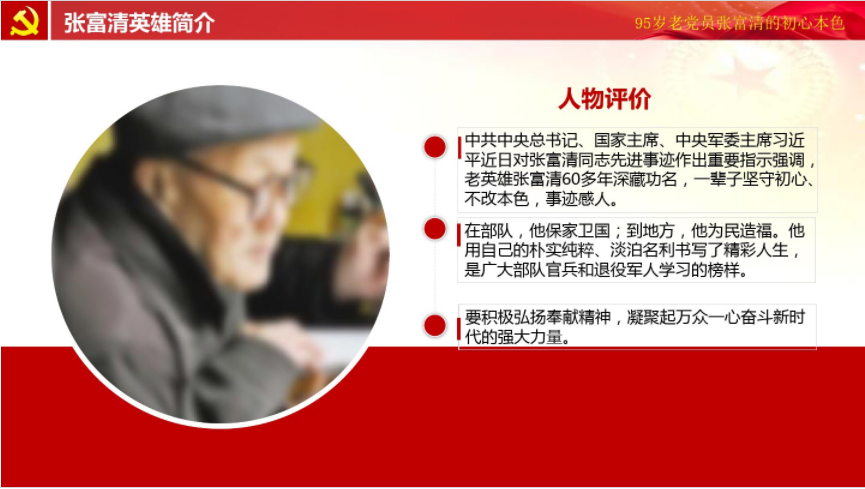 1、先帶大家一起來(lái)了解一下老英雄張富清同志